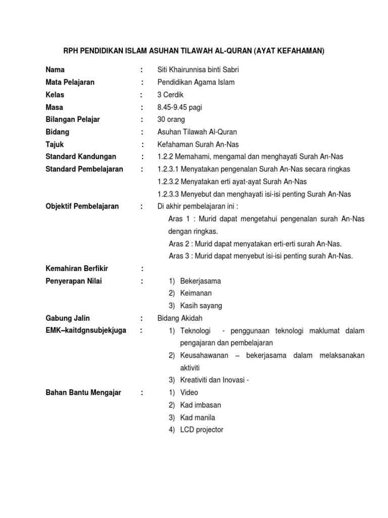Rph Pendidikan Islam Asuhan Tilawah Al Quran Ayat Kefahaman