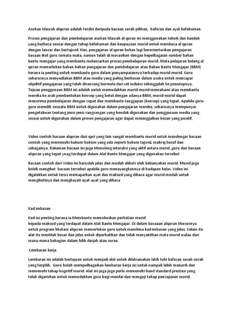 Doc Kaedah Pengajaran Dan Pembelajaran Tilawah Al Quran Nasio Dinsir Academia Edu